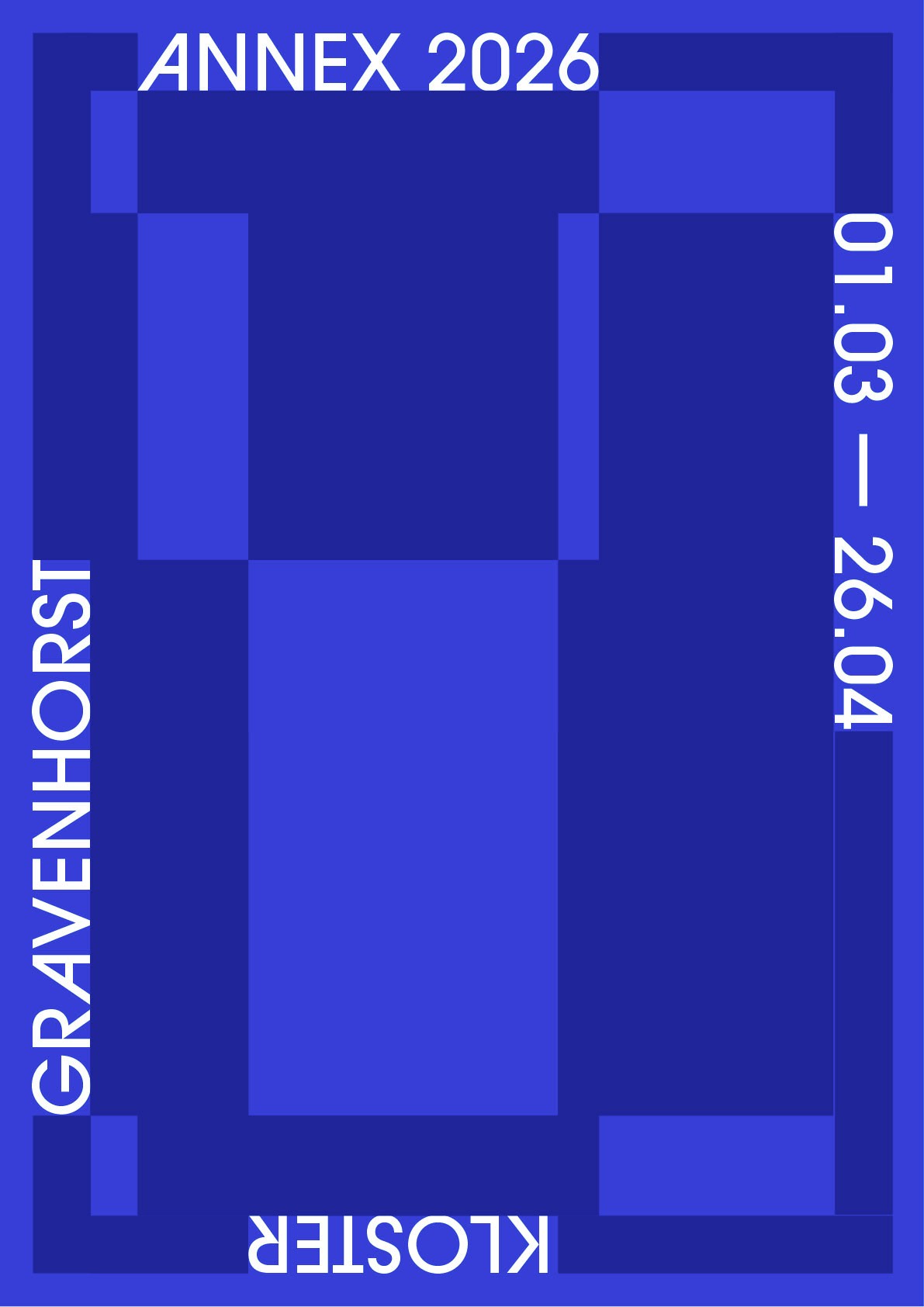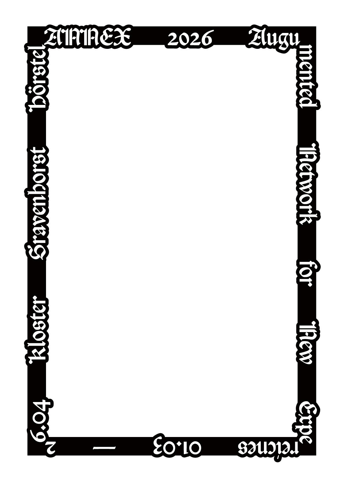 Ich übernahm dieses »Layout« in erste Entwürfe und probierte wie man diese in einen, modernen, digitalen Kontext setzen könnte in Bezug auf die Veranstaltung. Die Idee zum möglichen Veranstaltungsnahmen »Annex« entstand während der historischen Recherche zum Gebäude. Dort ist öfter die Rede von Annexen (Architektonische Anbauten) die dem Kloster in seiner bewegten baulichen Geschichte hinzugefügt und auf verschiedenen Wegen wieder abhanden gekommen sind. Die Veranstaltung selber könnte hierbei für einen Art Annex stehen, einem neuen symbolsicher Anbau, Richtung Zukunft.