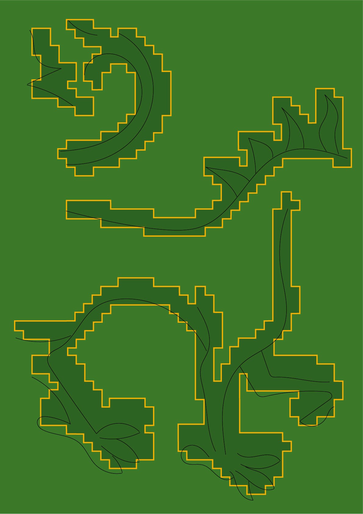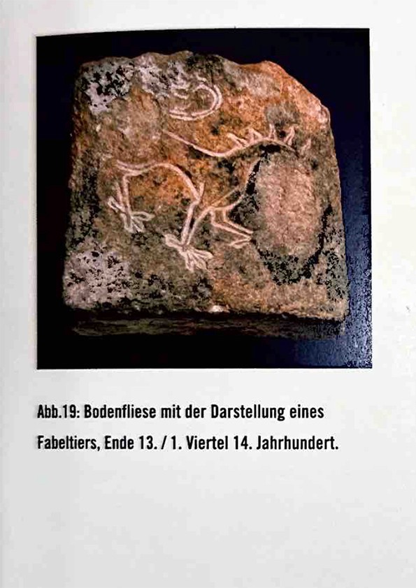 In einer Veröffentlichung über das Projekt »Regionale 2004« in dem Zuge das Kloster Gravenhorst Restauriert wurde, wird über die zuvor stattgefunden archäologischen Ausgrabungen berichtet. Bei diesen Ausgrabungen wurde unter anderem eine Bodenfliese aus Ende des 13. bis Anfang des 14. Jahrhunderts gefunden. Auf dieser ist mit tiefen Rillen eine Darstellung eines Fabeltiers, vermutlich das eines Greifs, geprägt. Die Umrisse fand ich sehr spannend und arbeitete mit diesen auf verschiedenen Arten digital. In der blauen Version nutzte ich ein stark herunterskalierte Textur der Klostermauer als eine Art Pinsel. Als Maskottchen könnte der Greif mit seinen facettenreichen Eigenschaften (von Vogel, Löwe, Pferd) die Vielfältigkeit der Veranstaltung repräsentieren.