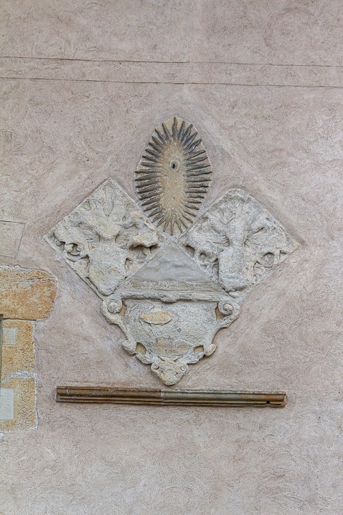 Dieser Strahlenkranz im Fassadenschmuck an der Innenhofseite des Westflügels fand ich von seiner Formgebung spannend. Die Abstraktion ist mir im ersten Versuch aber noch zu grob und weit entfernt gewesen. Im weiteren Verlauf habe ich diesen Ansatz nicht weiter ausgearbeitet.