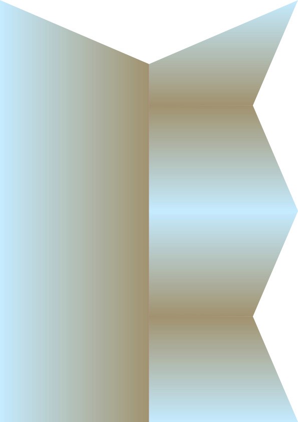 Ich arbeitete mit der Süd-West Winkel Konstellation weiter und bei einem Blick auf ein Bild in das Innere des Saals im Westflügel fiel mir der riesige Giebel wieder in Auge, in den man bis oben in die Spitze hereinschauen konnte. Ursprünglich befanden sich hier mal zwei Geschosse doch auf die Wiederherstellung des zwischen Bodens wurde verzichtet, erkennen kann man heute noch die Balkenauflagen an den Wänden links und rechts. Aus der Form des Giebels übersetzte ich eine abstrahierte Darstellung und richtete diese im rechten Winkel aus. Daraus ergabt sich eine spannende Formstruktur. Auf Basis dieser probierte ich verschiedene Anordnungen und Rhythmen aus um zu schauen wie man systematisch und abwechslungsreich mit den der Struktur umgehen kann.
