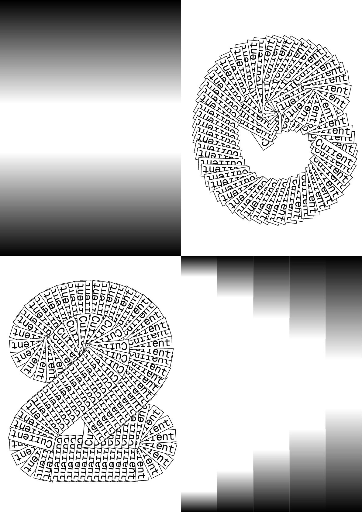 In Verbindung mit den Verläufen hat dieser an Geschwindigkeit gewonnen doch nicht in die Richtung, in die man zunächst dachte. Als Produkt des Negativraums der Verläufe wird er wie ein Riss von diesen Aufgezogen und enthüllt eine neue Ebene unter sich.