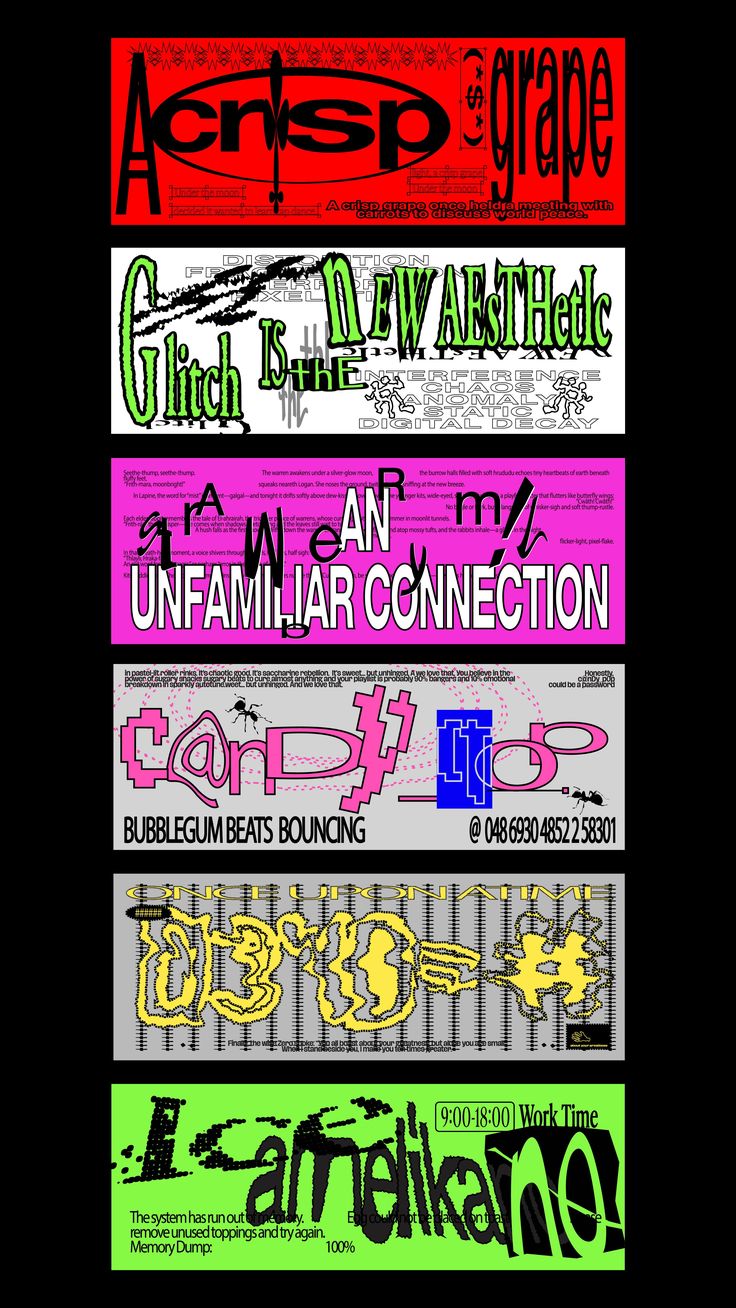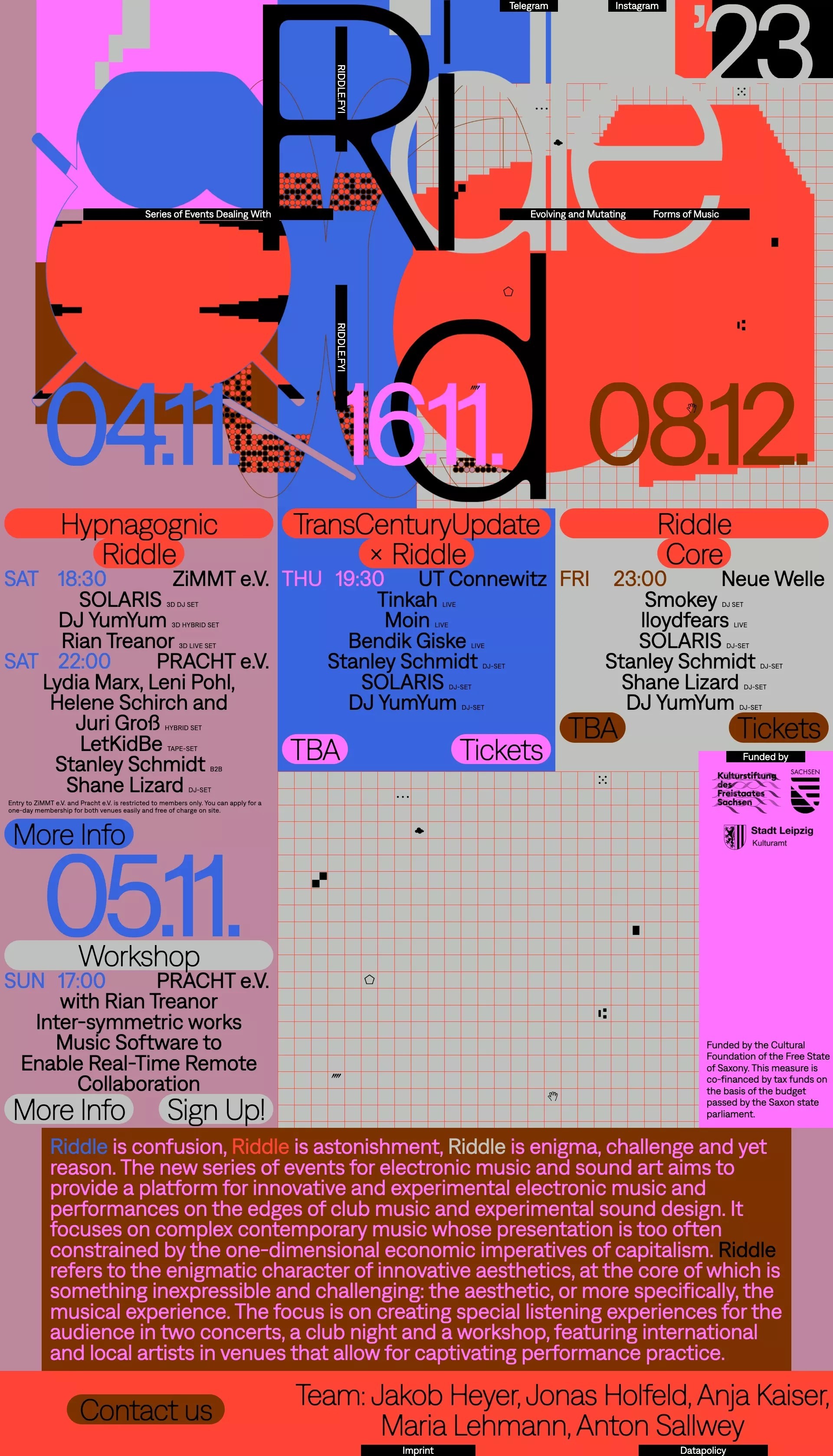 Für die Schriftebene wurde die digitale Raster-Ästhetik weite ausgeführt. Die knalligen Farbkontraste aus den Referenzen war eine perfekte Grundlage um eine Farbpalette zu entwickeln die Dynamik und Formkontraste der Gestaltung fortführte.
